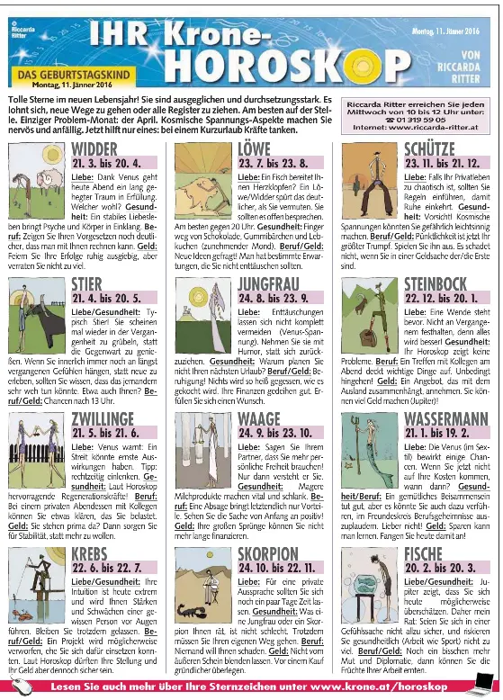 Pressreader Kronen Zeitung 2016 01 11 Ihr Krone Horoskop